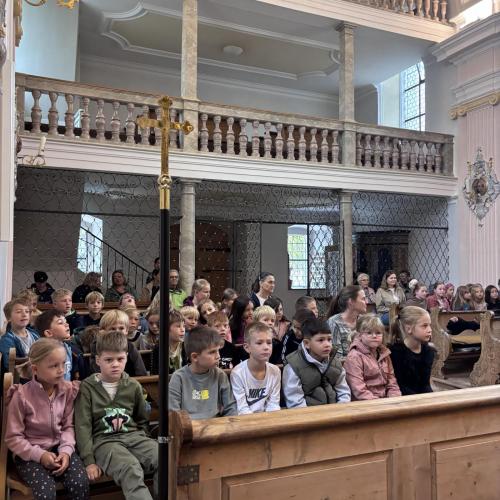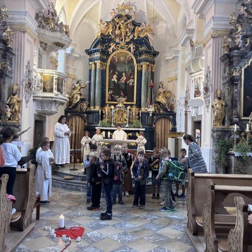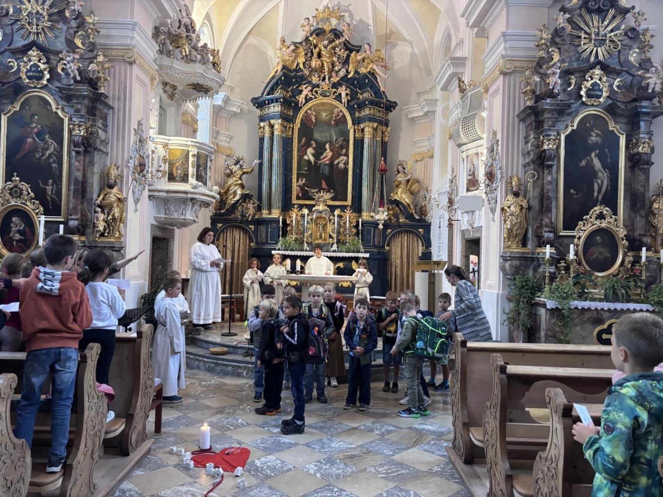 Im Wortgottesdienst haben wir die neuen Schüler der 1. Klasse begrüßt und gesegnet. Frau Dornauers „roter Faden der Liebe und Verbindungen“ wird uns durchs Schuljahr stets begleiten.