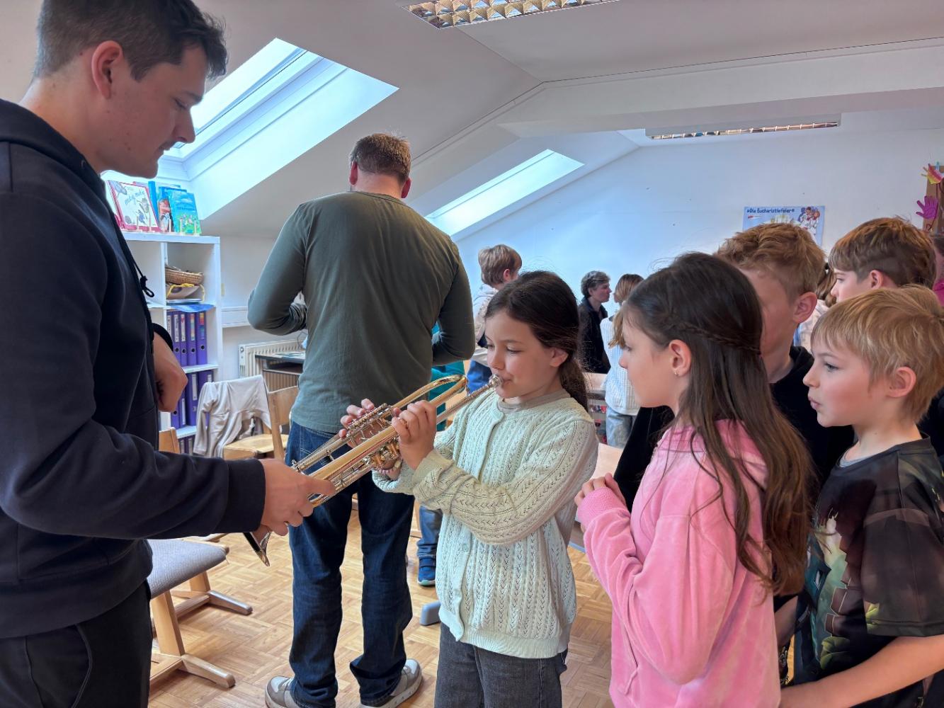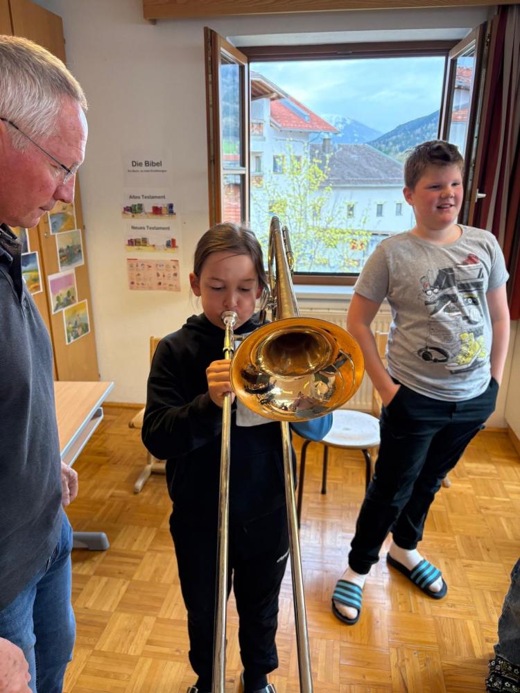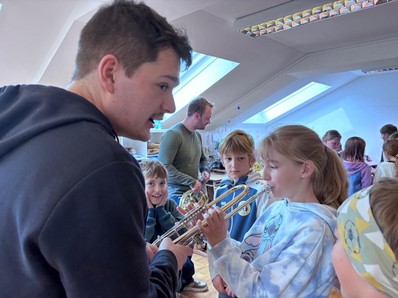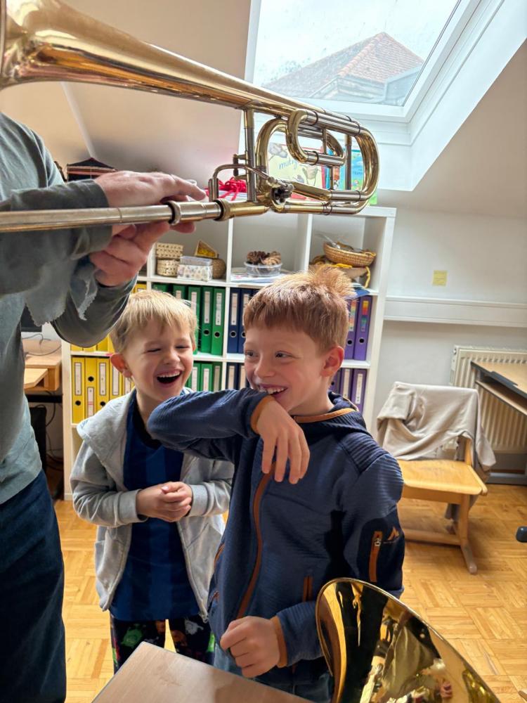 Unfassbar aber wahr! Jeder der wollte durfte in jedes Instrument blasen und versuchen einen Ton zu spielen. Manche waren kaum zu hören, andere wieder nicht zu überhören und andere total schief! So unglaublich toll!