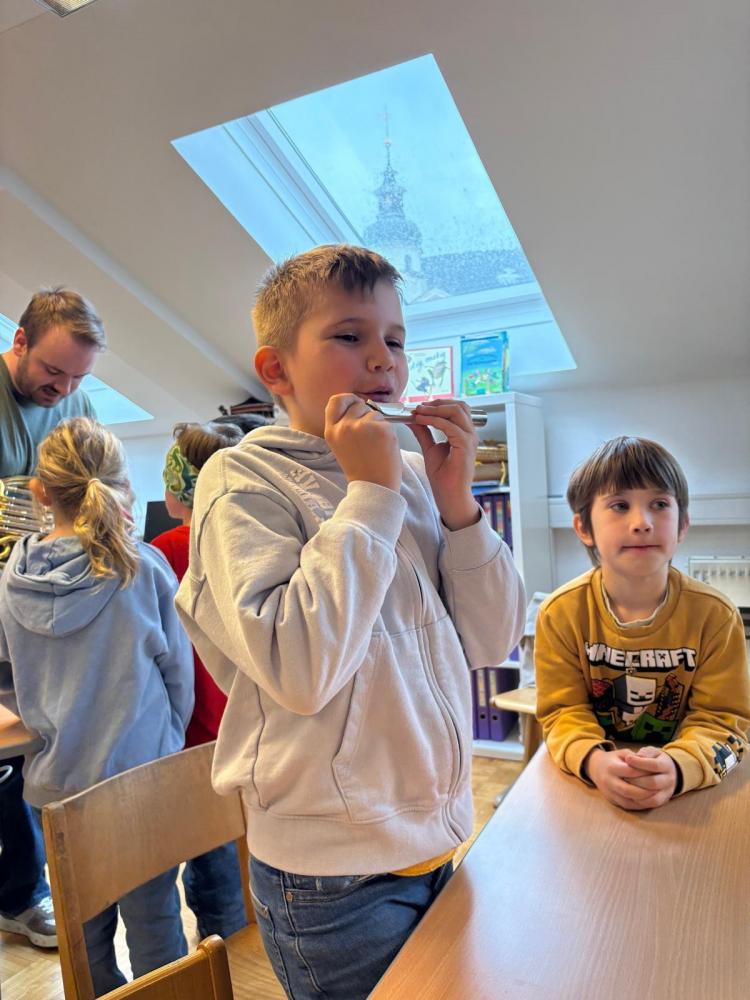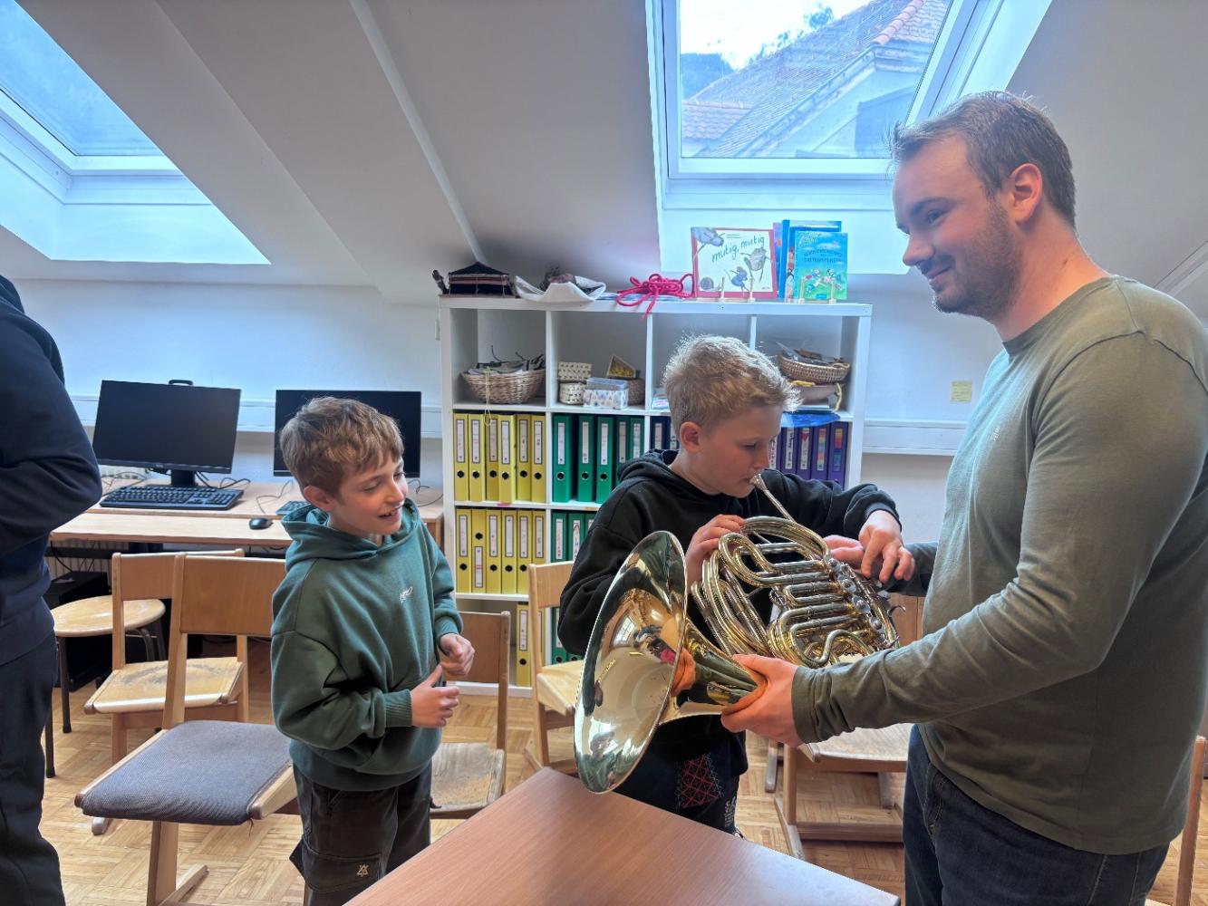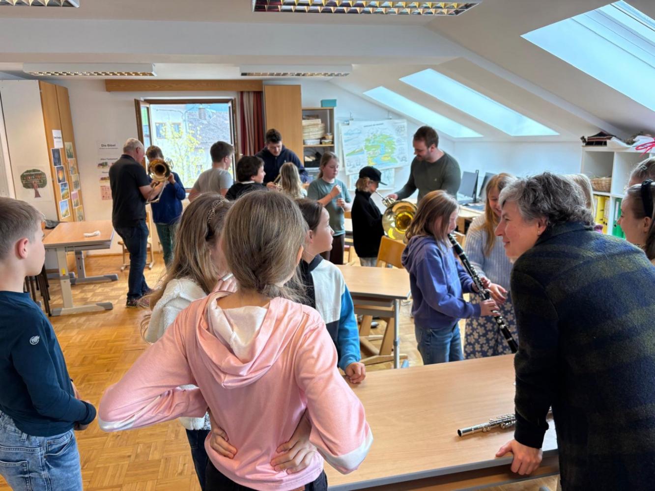 Unfassbar aber wahr! Jeder der wollte durfte in jedes Instrument blasen und versuchen einen Ton zu spielen. Manche waren kaum zu hören, andere wieder nicht zu überhören und andere total schief! So unglaublich toll!