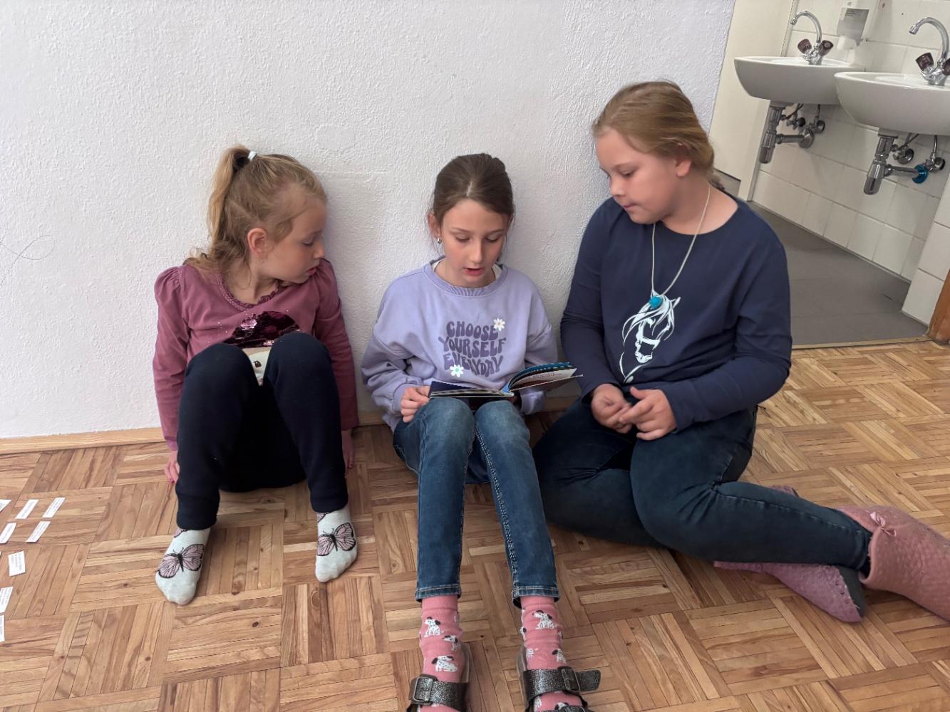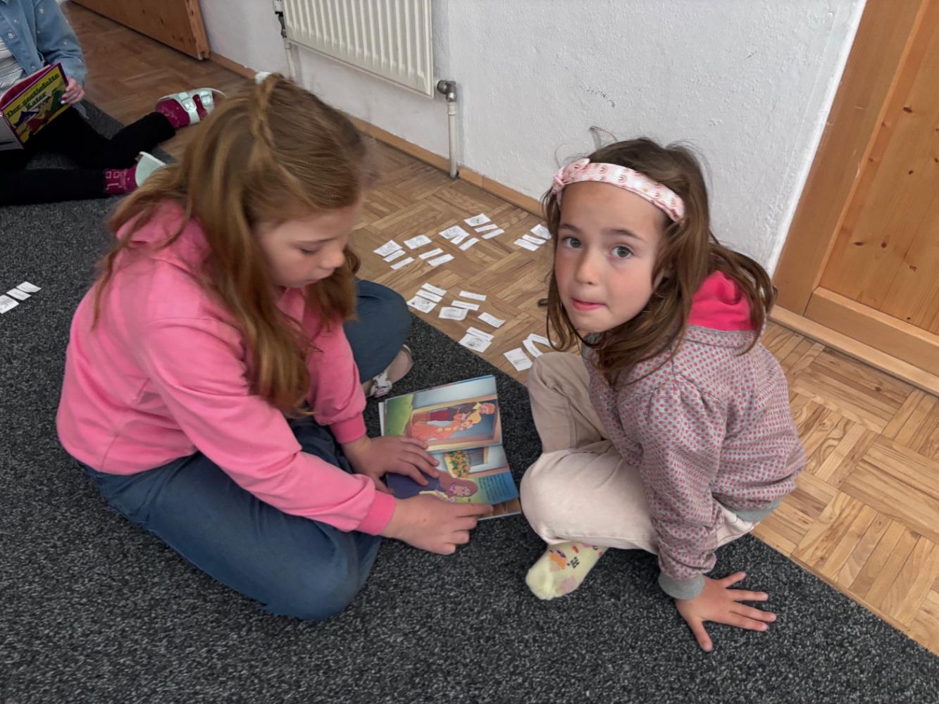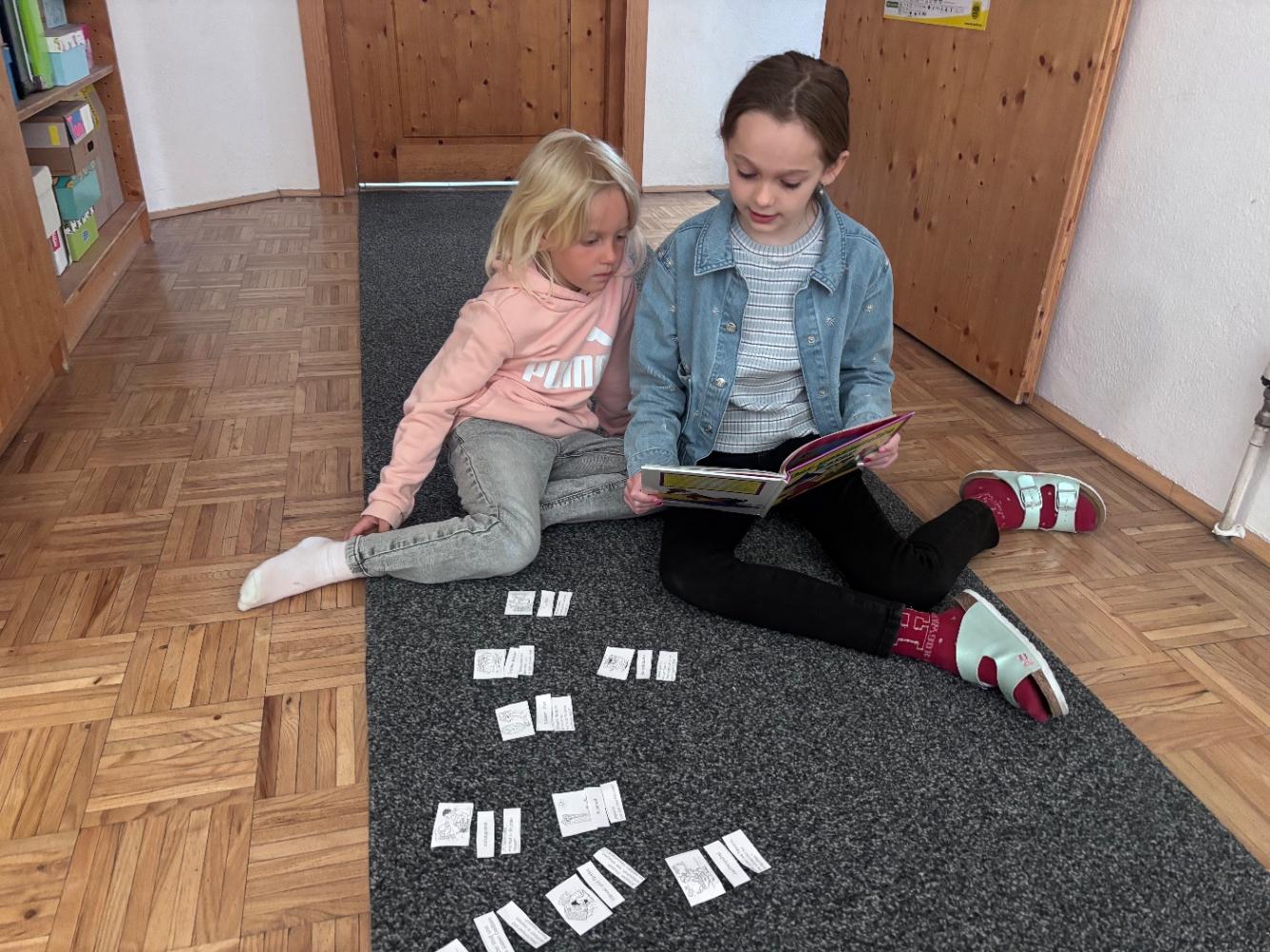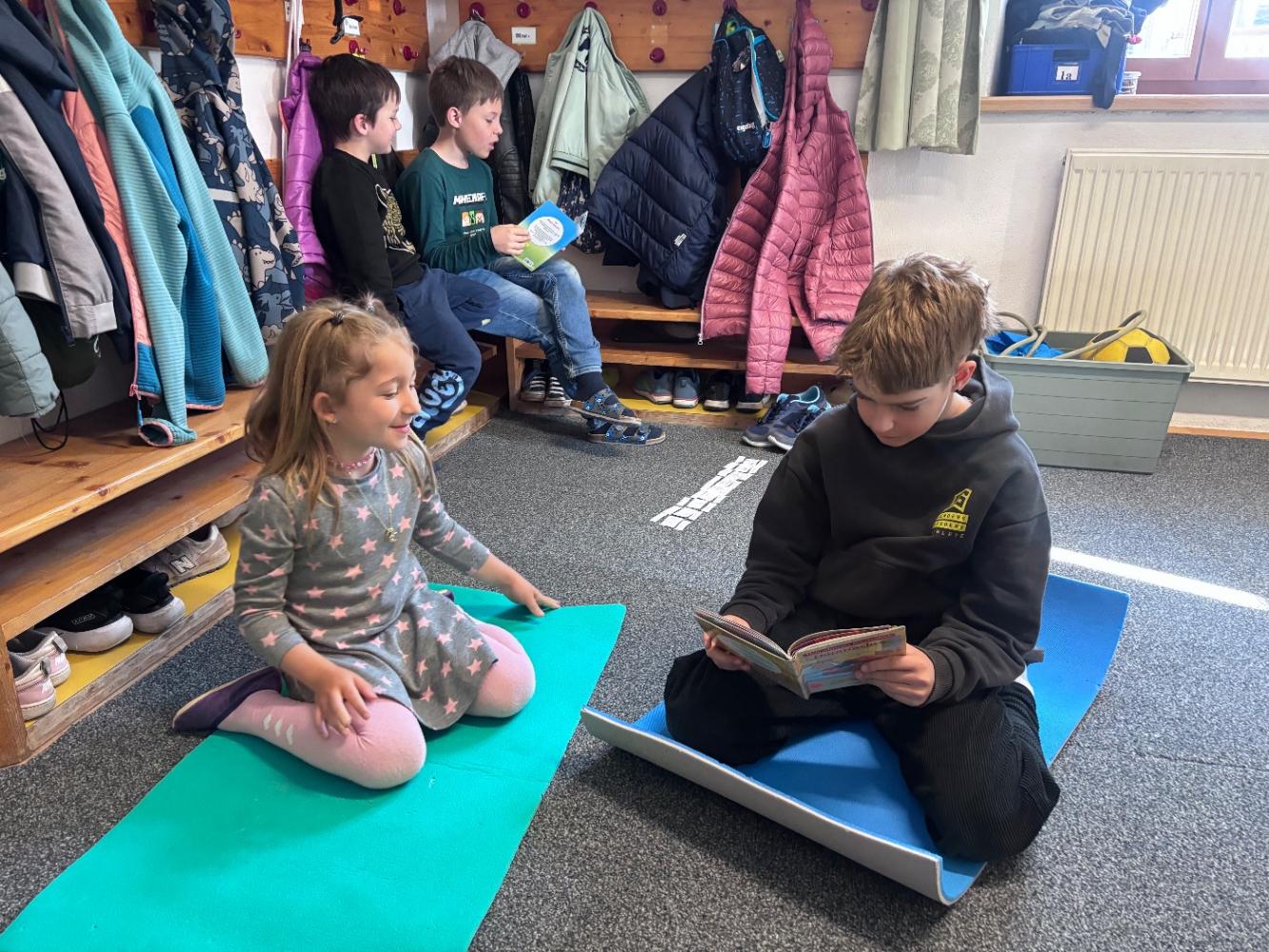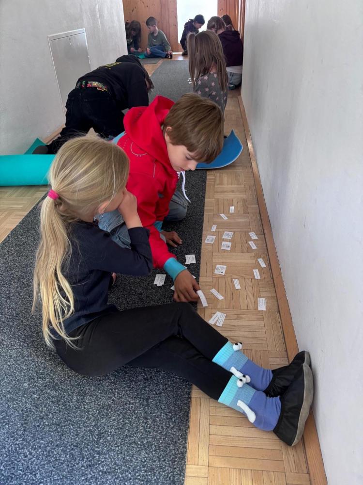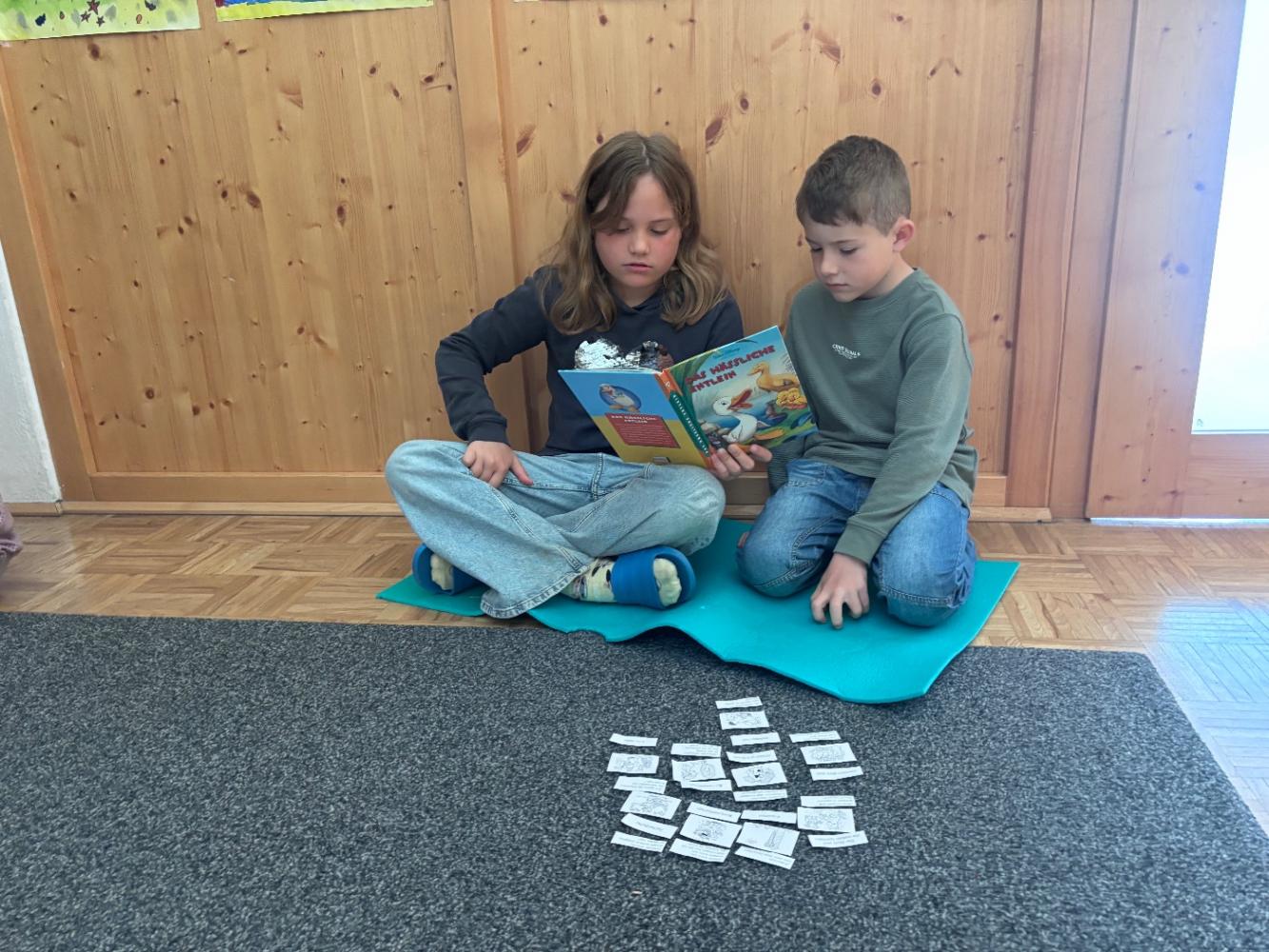 Gemeinsam mit zwei Kindergartenpädagoginnen wanderten die großen Kinder des Kindergartens Birgitz zu uns in die Volksschule. In kleinen Gruppen oder paarweise lösten wir Rätsel zum Märchen. Anschließend lasen wir unseren zukünftigen MitschülerInnen ein Märchen oder eine Geschichte vor.
