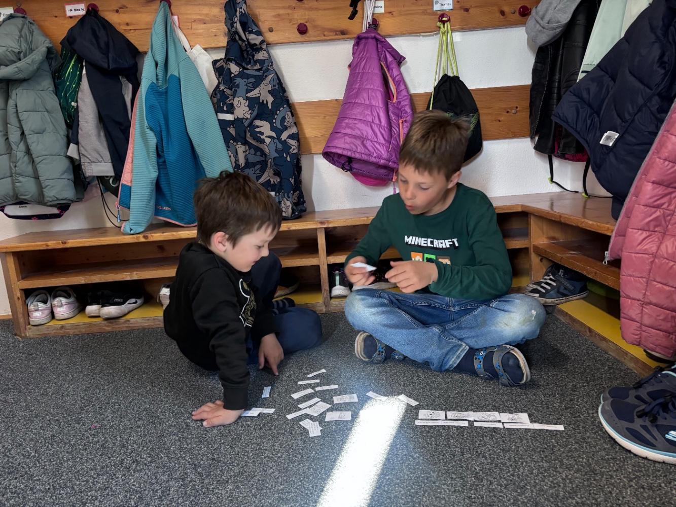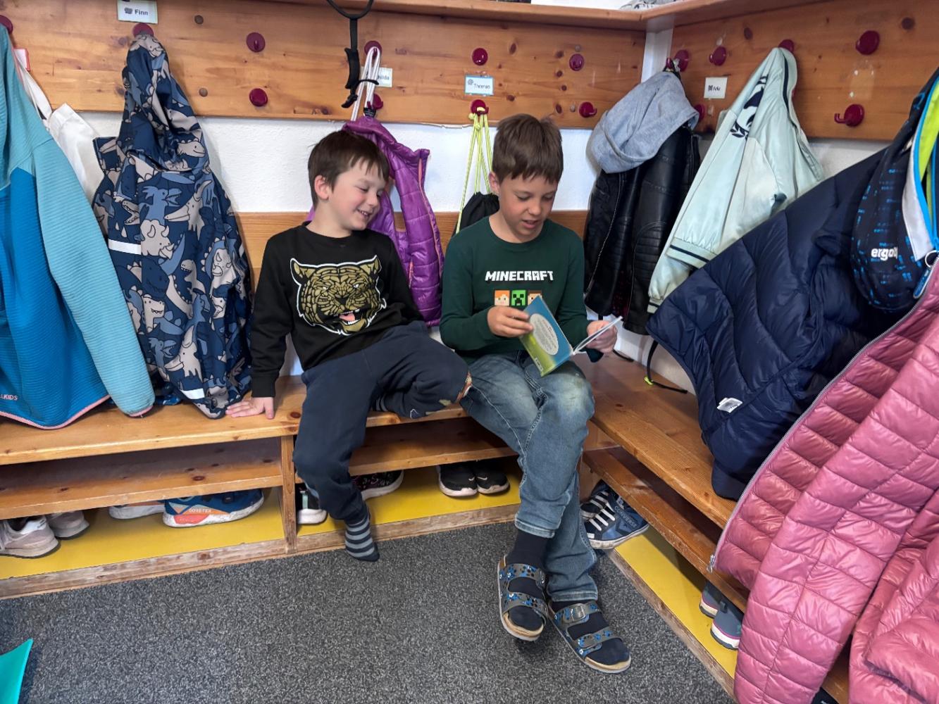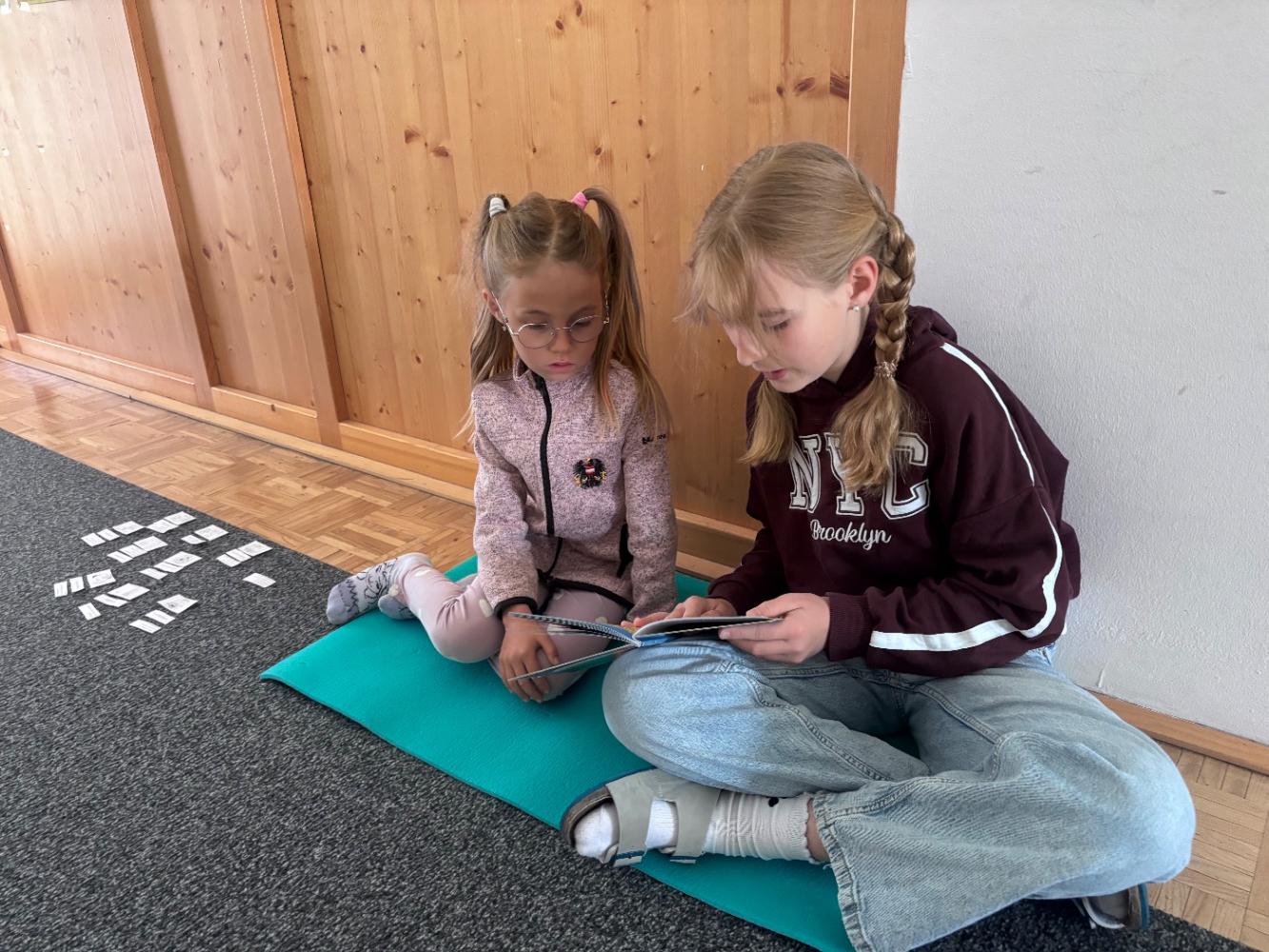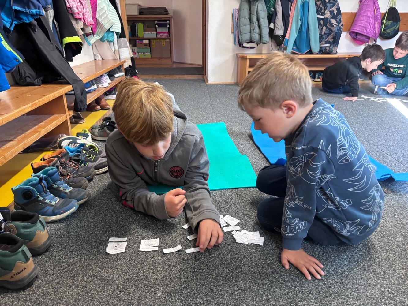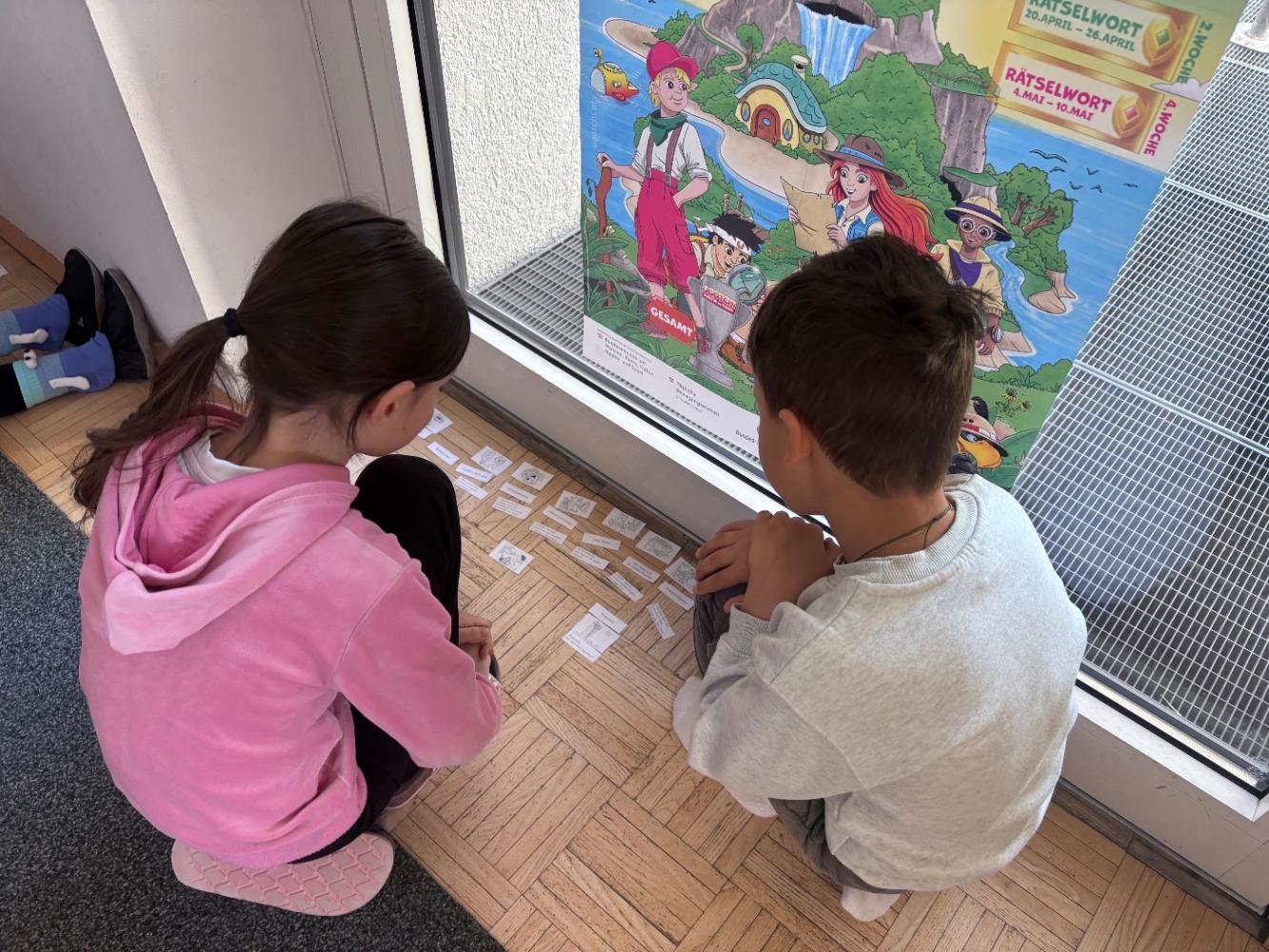 Gemeinsam mit zwei Kindergartenpädagoginnen wanderten die großen Kinder des Kindergartens Birgitz zu uns in die Volksschule. In kleinen Gruppen oder paarweise lösten wir Rätsel zum Märchen. Anschließend lasen wir unseren zukünftigen MitschülerInnen ein Märchen oder eine Geschichte vor.
