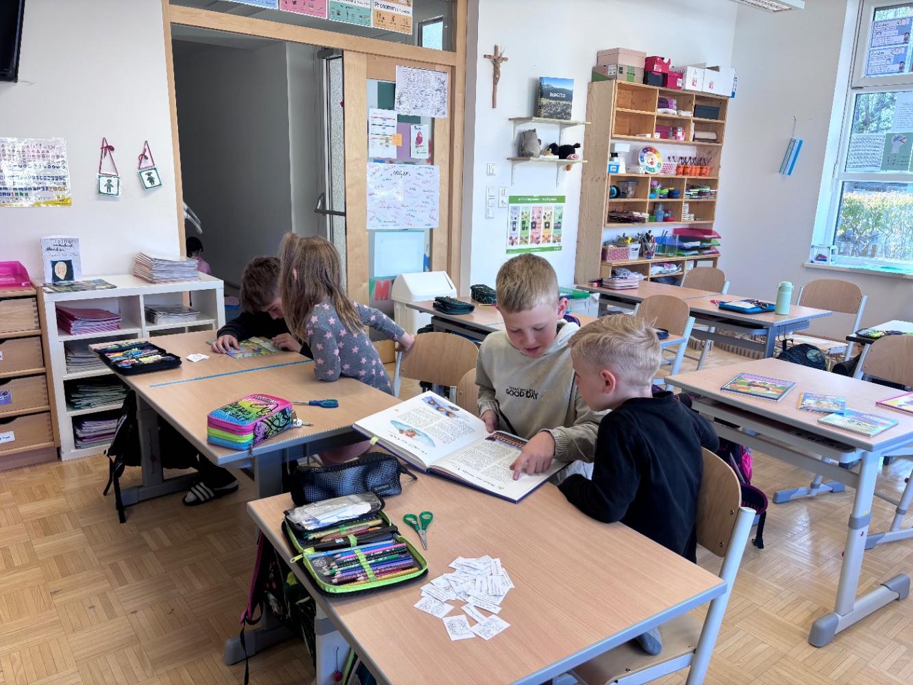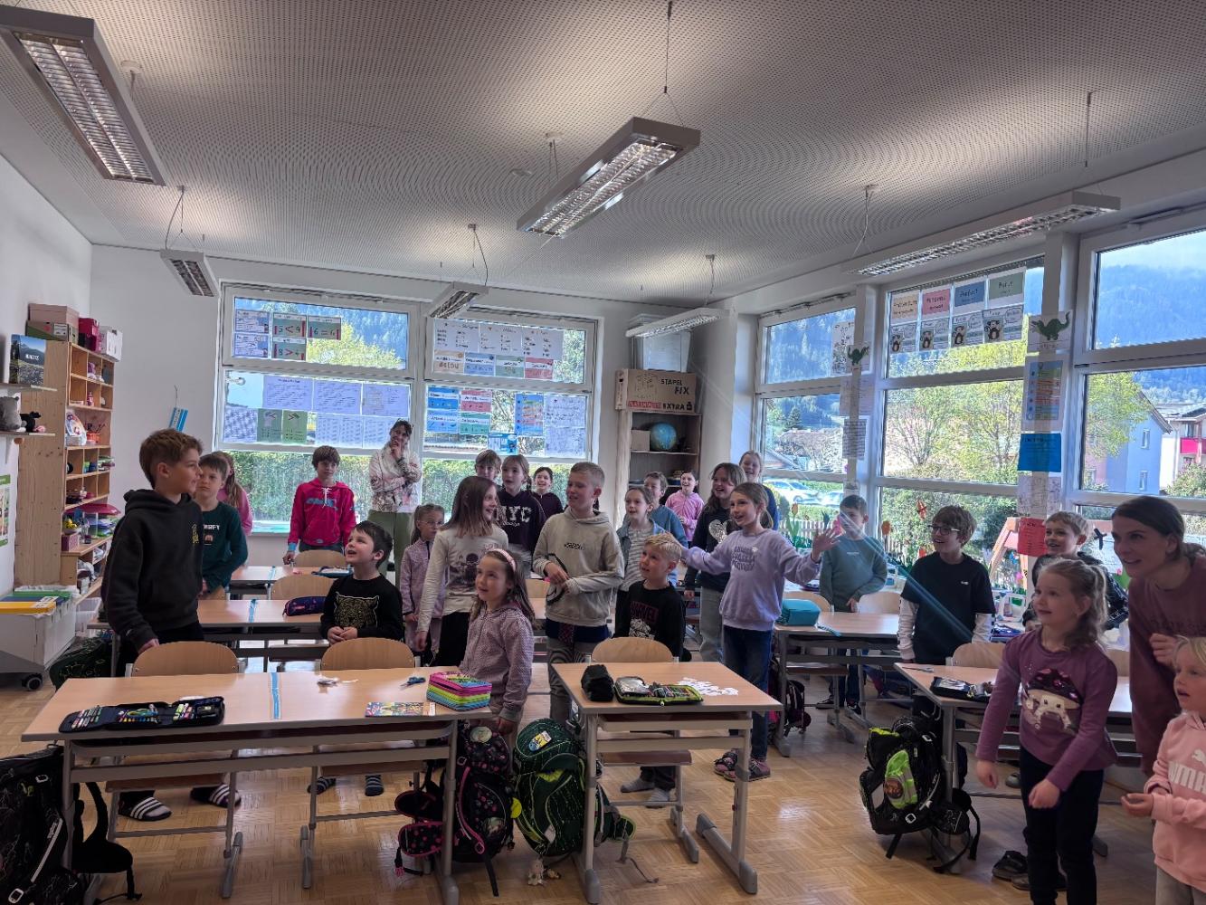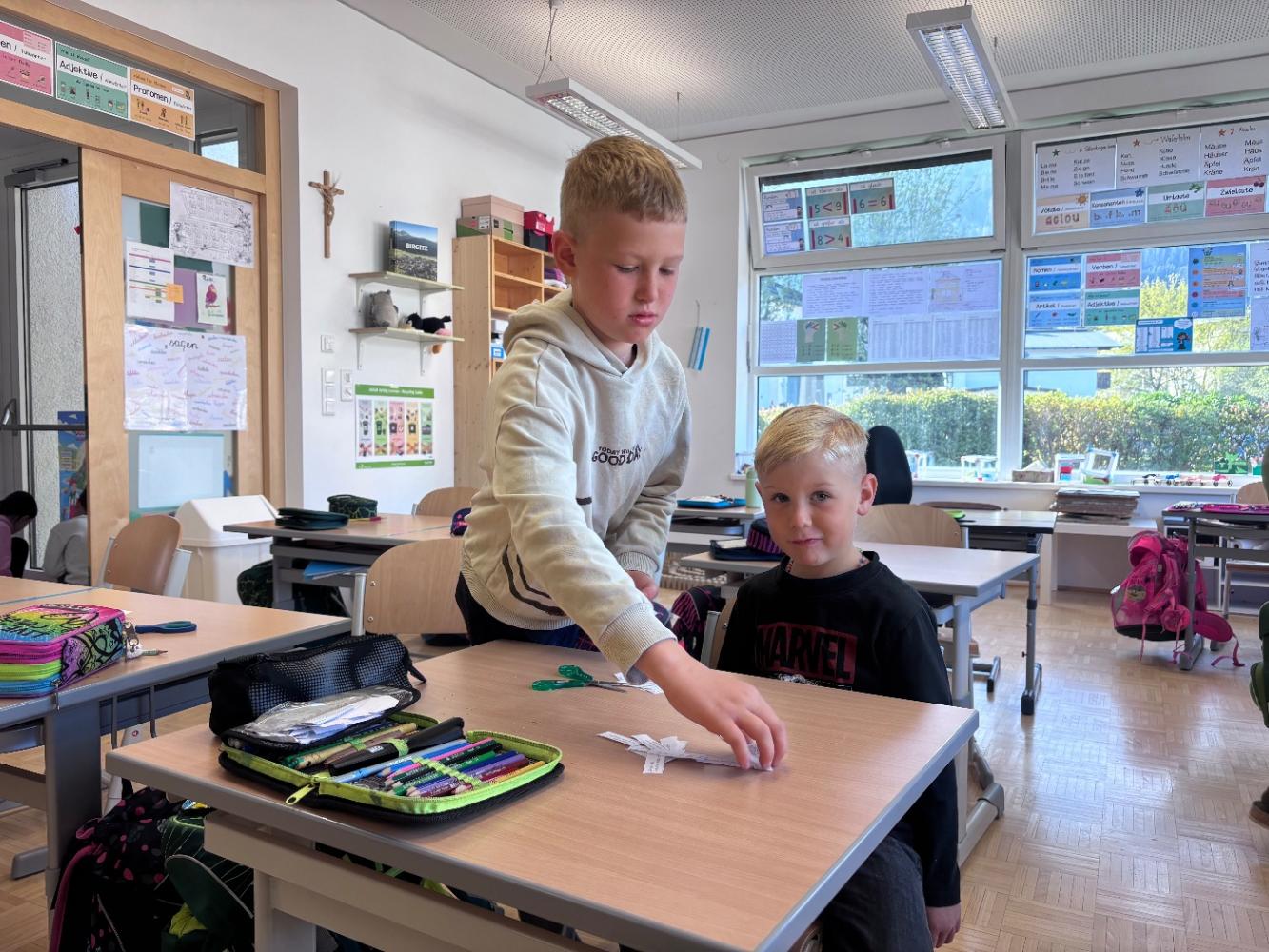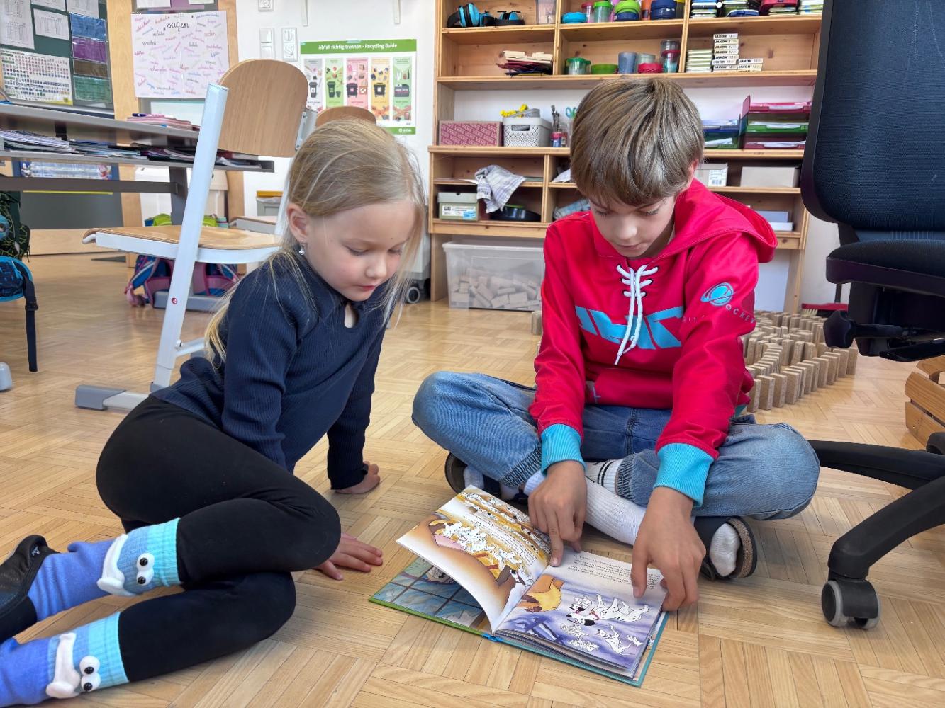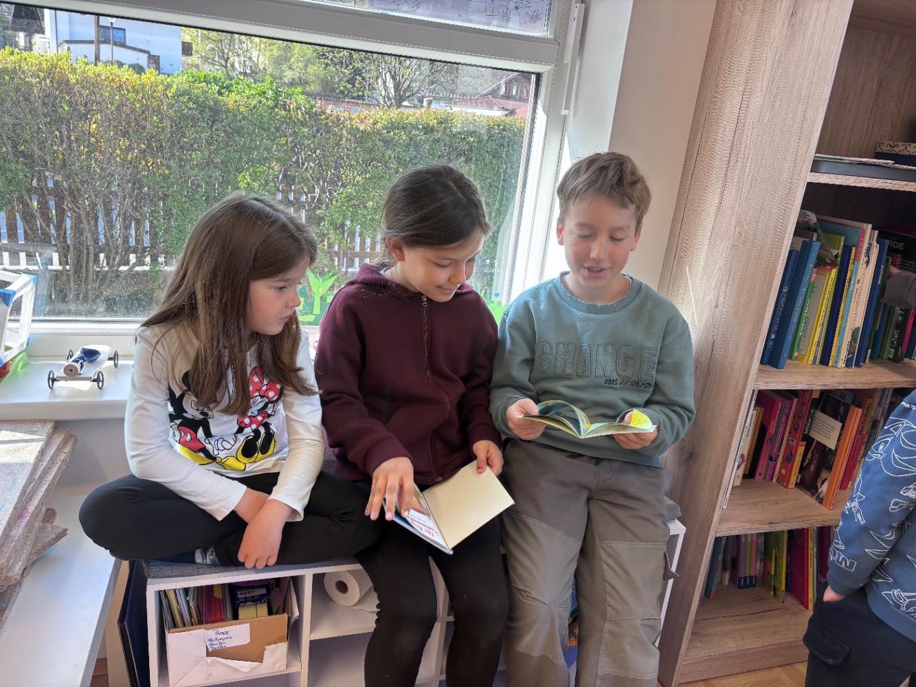 Gemeinsam mit zwei Kindergartenpädagoginnen wanderten die großen Kinder des Kindergartens Birgitz zu uns in die Volksschule. In kleinen Gruppen oder paarweise lösten wir Rätsel zum Märchen. Anschließend lasen wir unseren zukünftigen MitschülerInnen ein Märchen oder eine Geschichte vor.