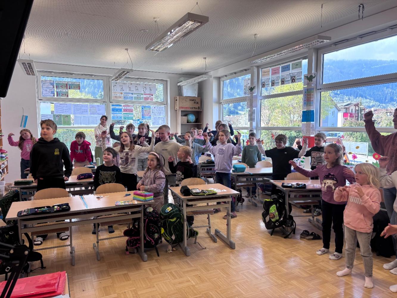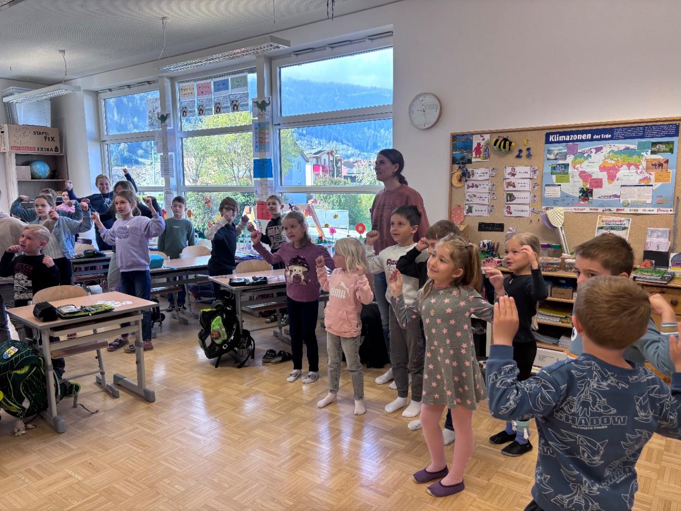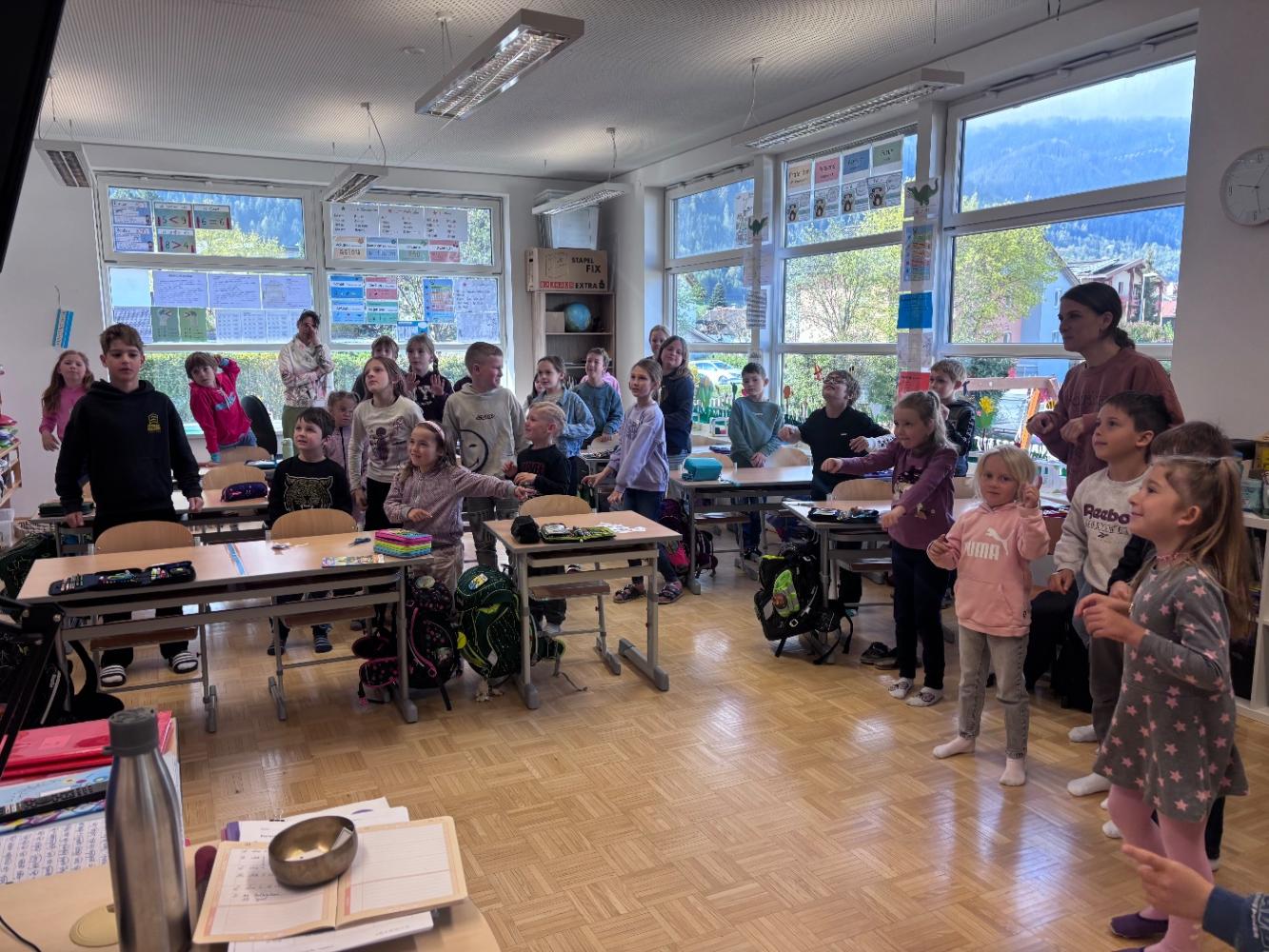 Zum Abschluss tanzten und sangen wir noch ein Frühlingslied „Kuck mal diese Biene da“.