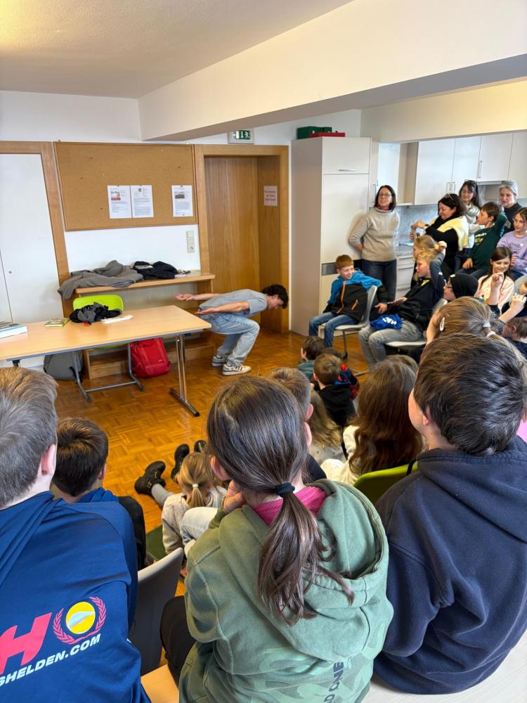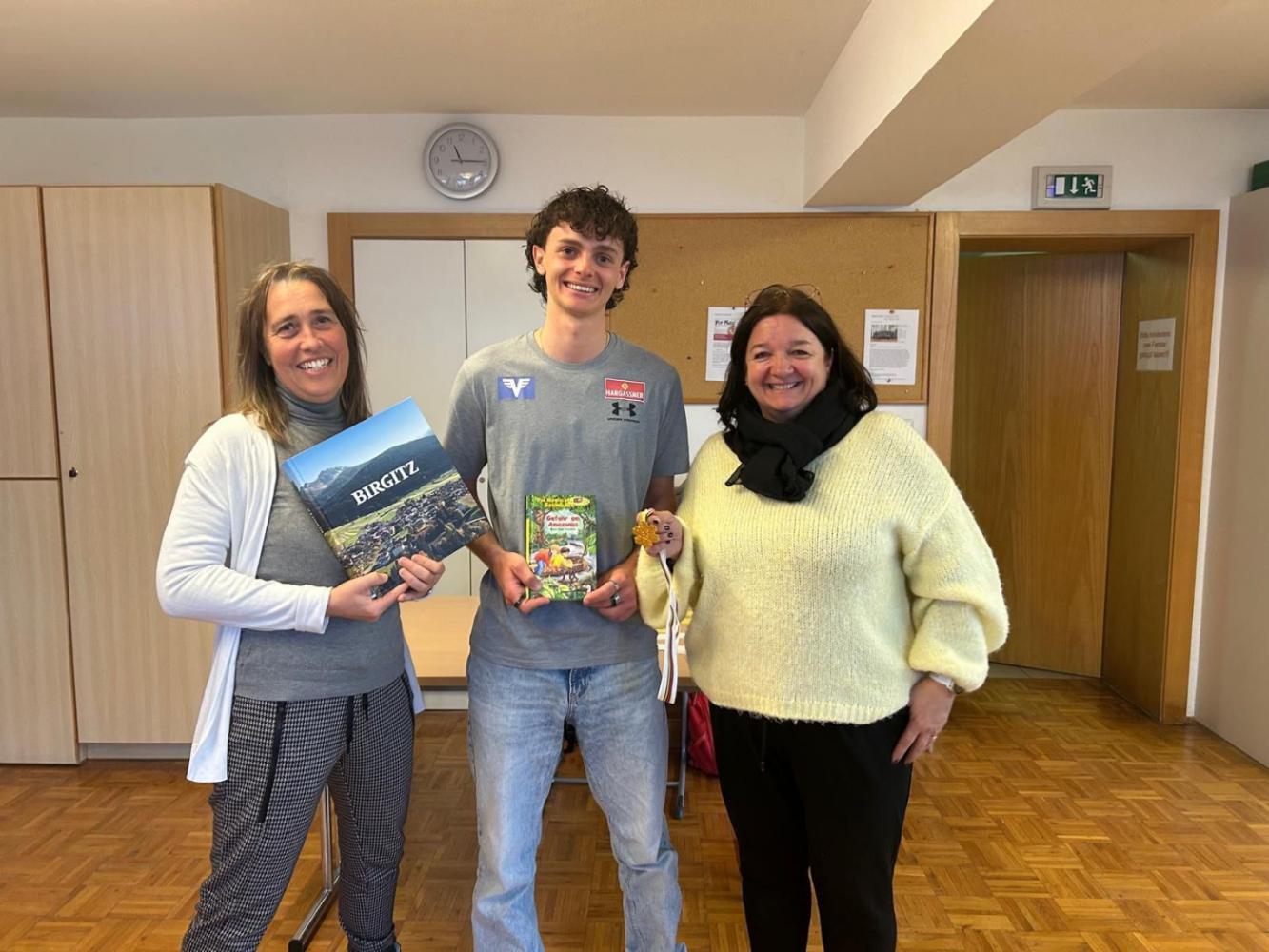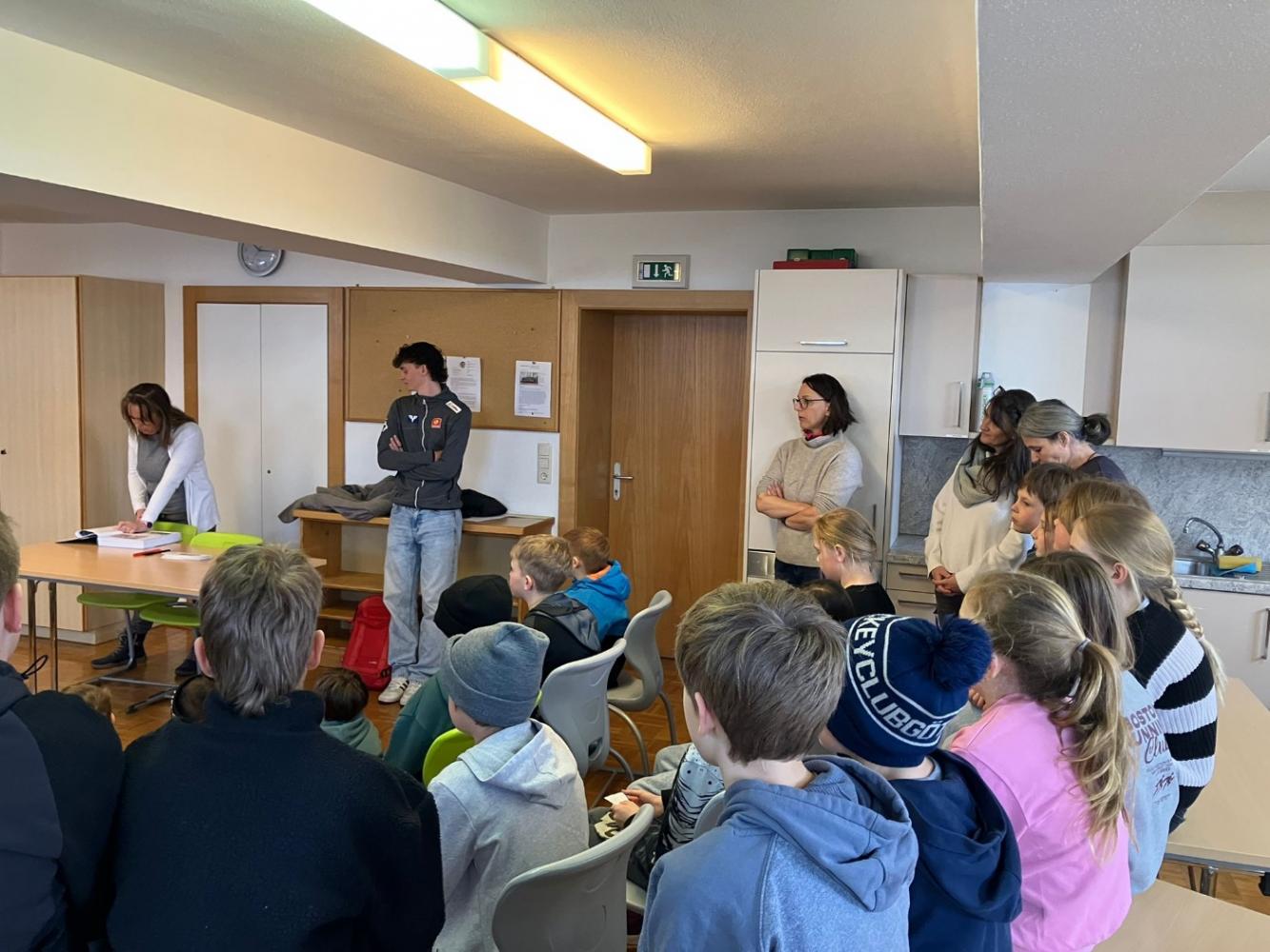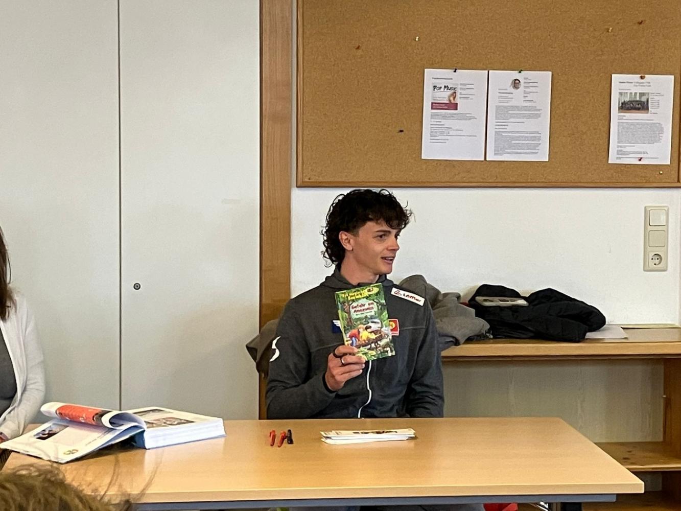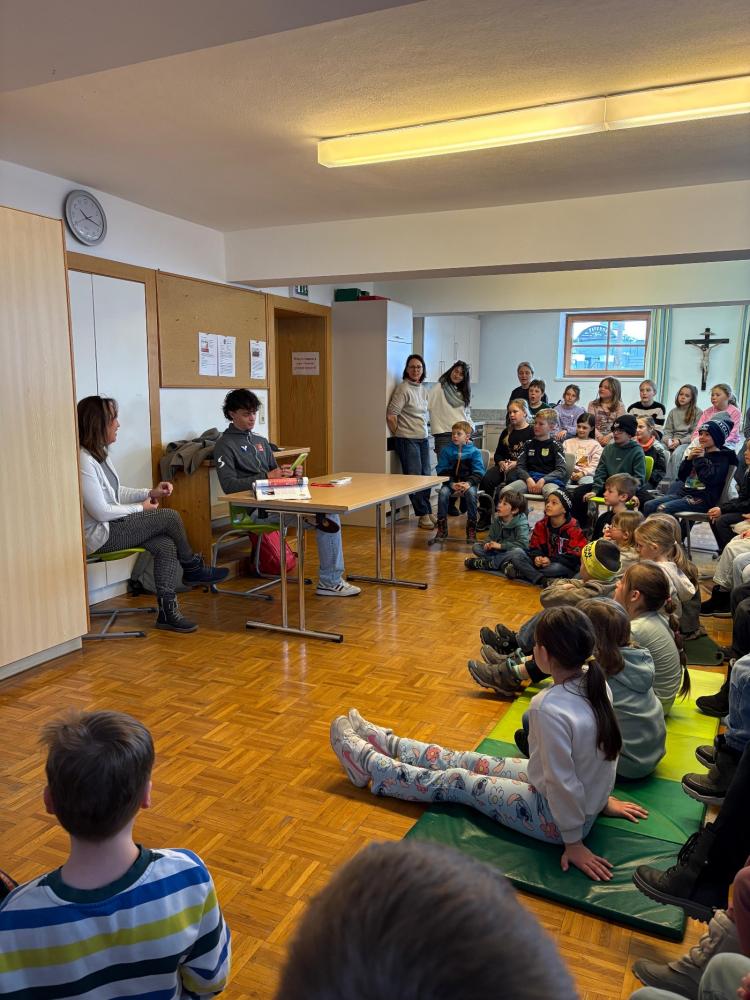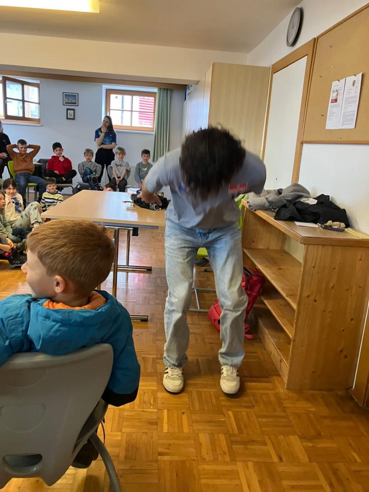 Elias Medwed ein österreichischer Skispringer, der selbst aus Birgitz stammt, besuchte uns an der Schule, las uns vor und zeigte uns wie die richtige Sprungpose aussieht. Wie cool und spannend! Natürlich staubten wir noch ein Autogramm ab und durften Fragen stellen.