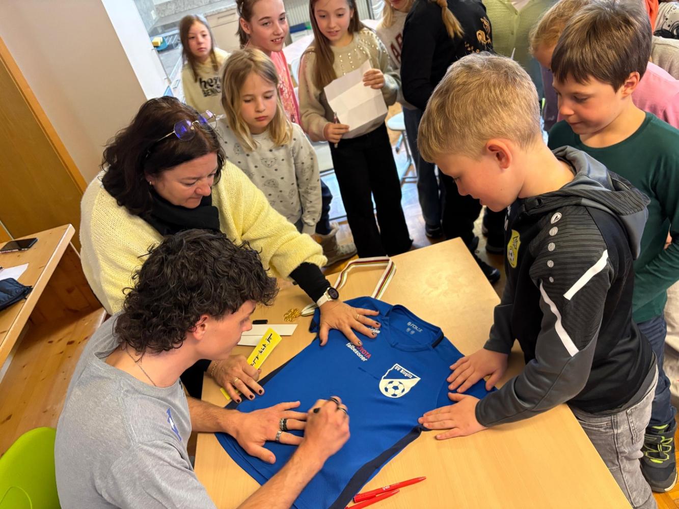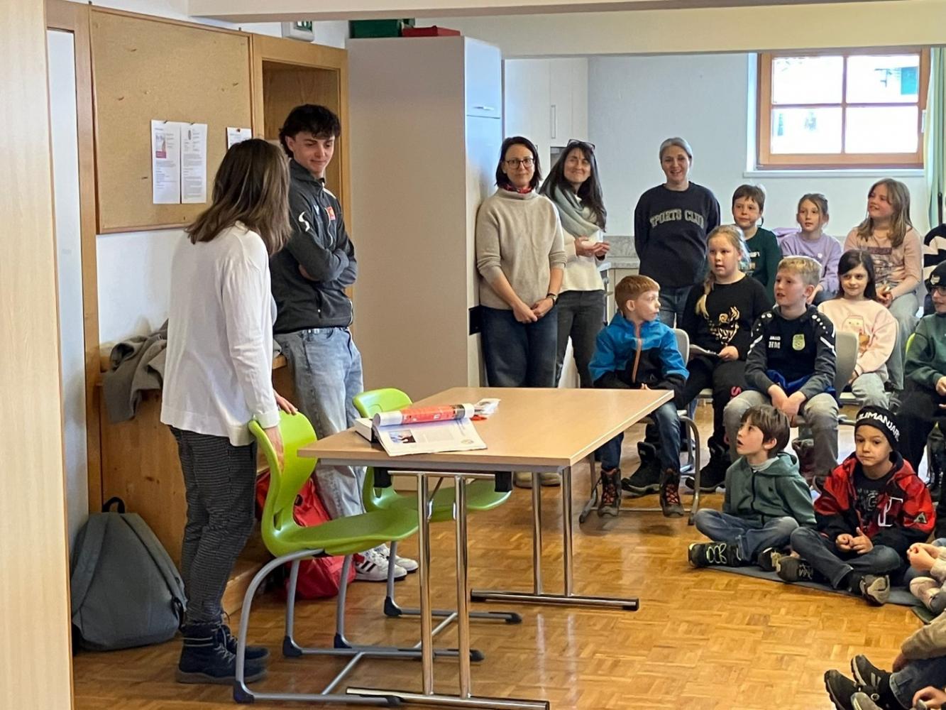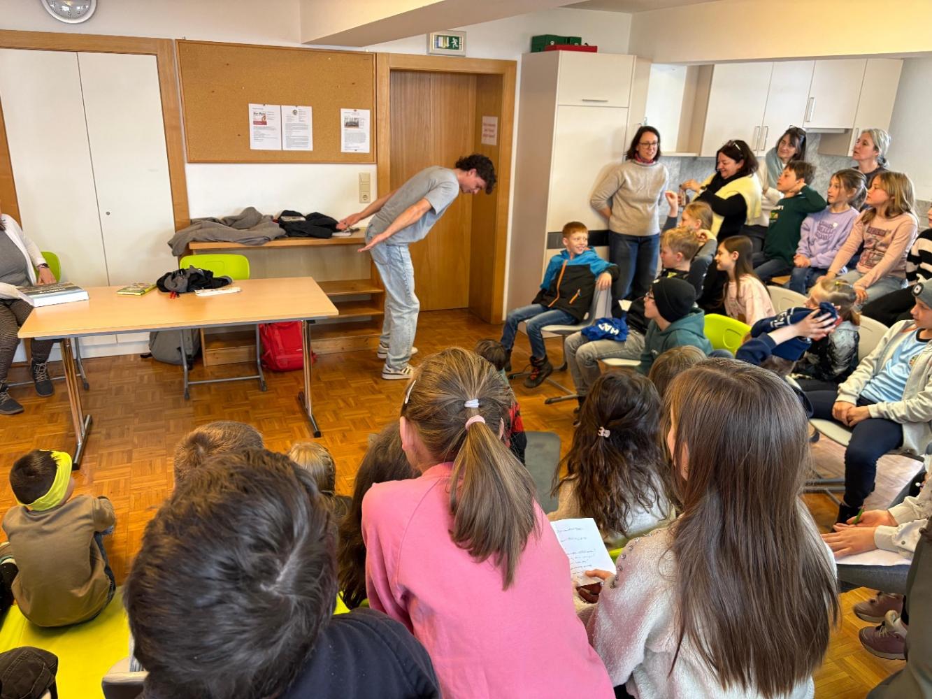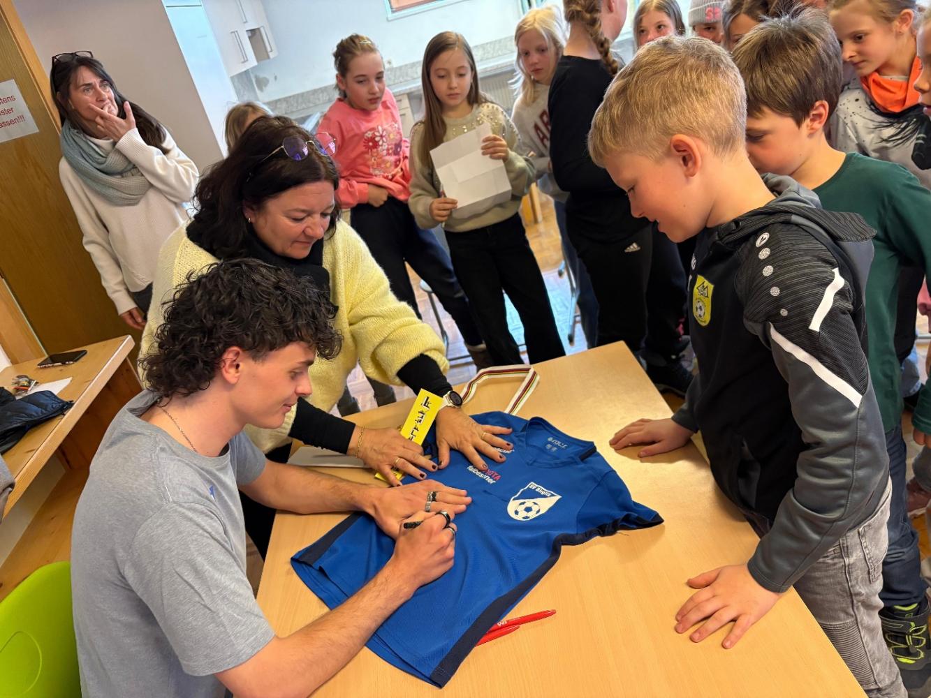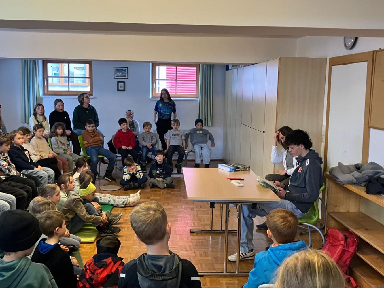 Elias Medwed ein österreichischer Skispringer, der selbst aus Birgitz stammt, besuchte uns an der Schule, las uns vor und zeigte uns wie die richtige Sprungpose aussieht. Wie cool und spannend! Natürlich staubten wir noch ein Autogramm ab und durften Fragen stellen.