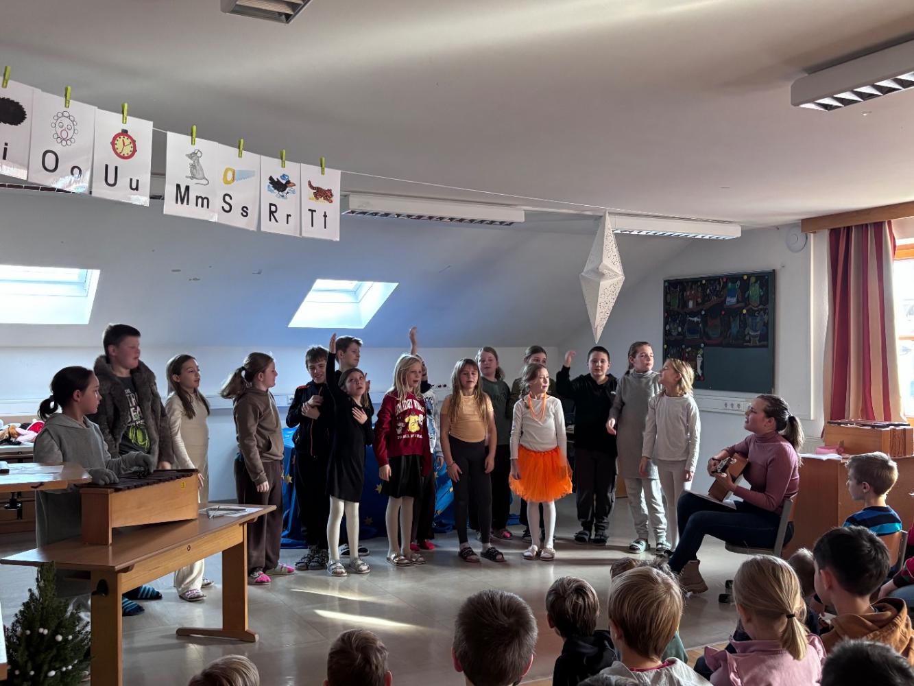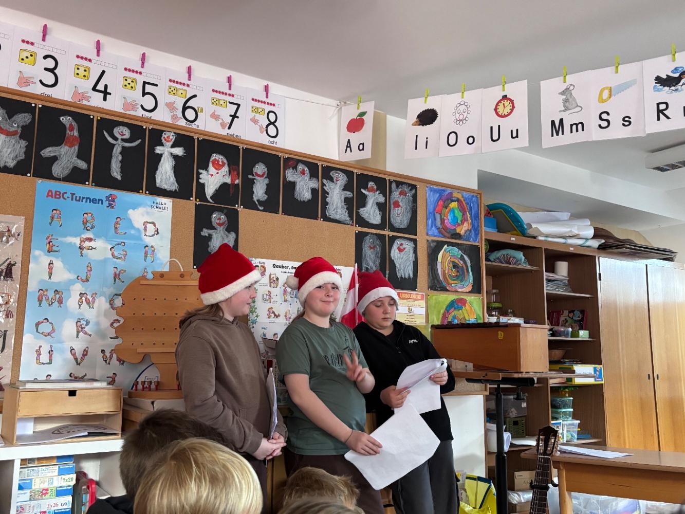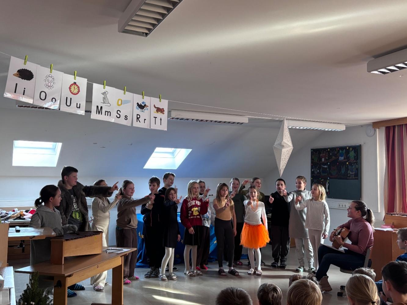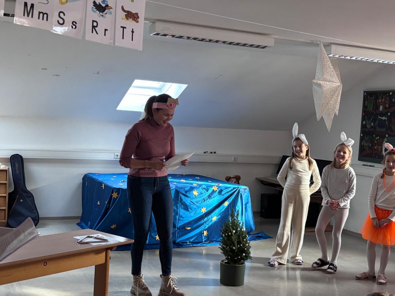 Pünktlich zu Weihnachten führen wir ein Stück auf und begleiten dies gemeinsam mit Liedern für unsere Eltern. Immer ein wenig nervös und aufgeregt freuen wir uns sehr auf diese Momente und zeigen sie auch gerne unseren Mitschülern der anderen Klassen an der Schule, die sich immer riesig freuen!