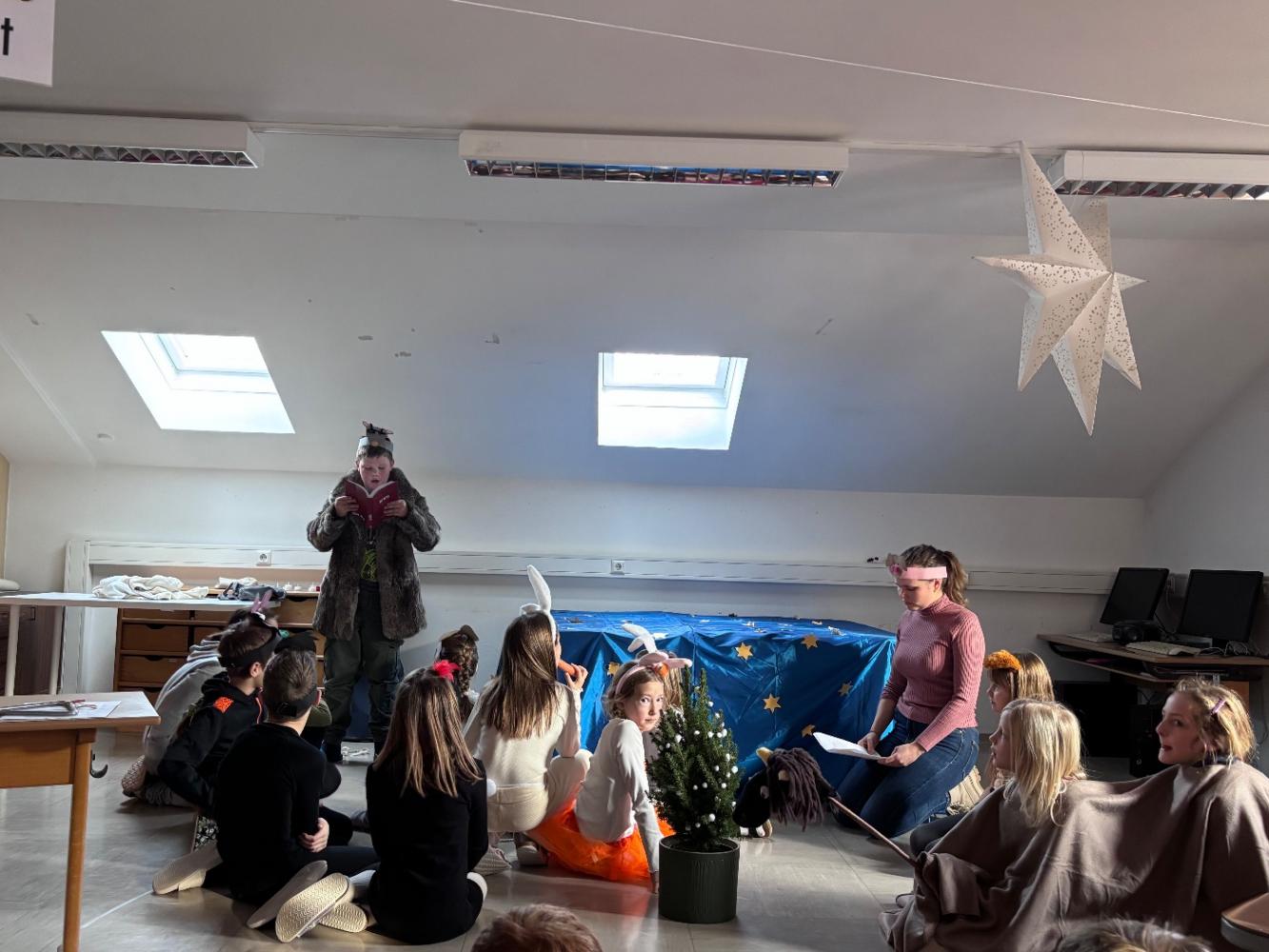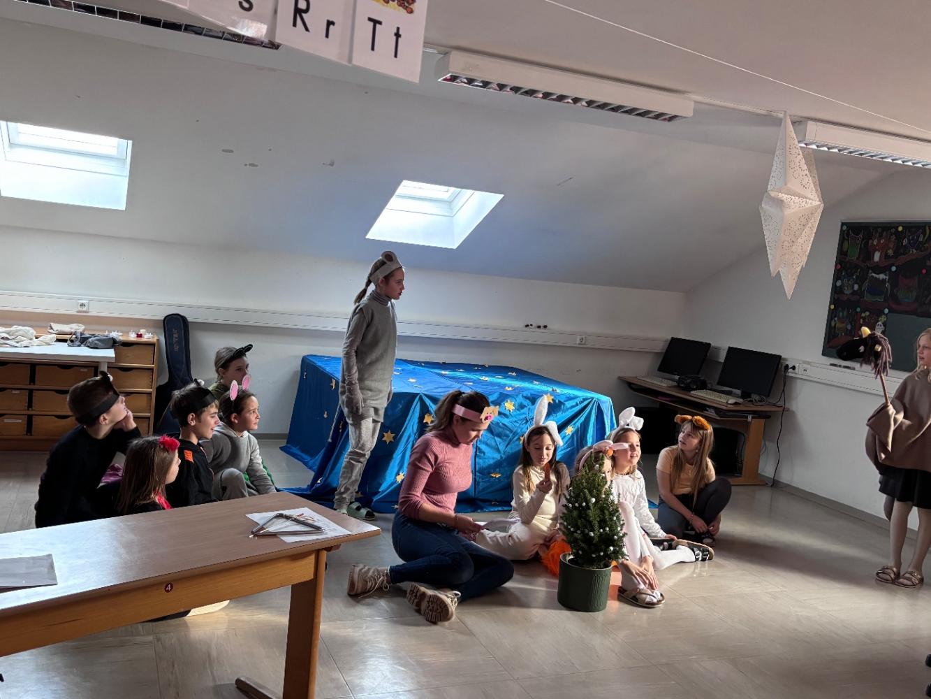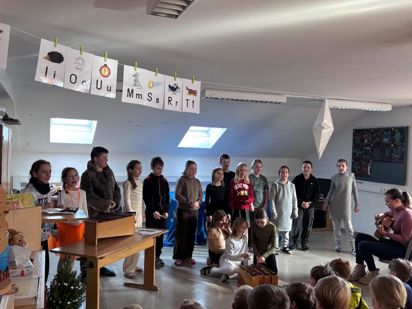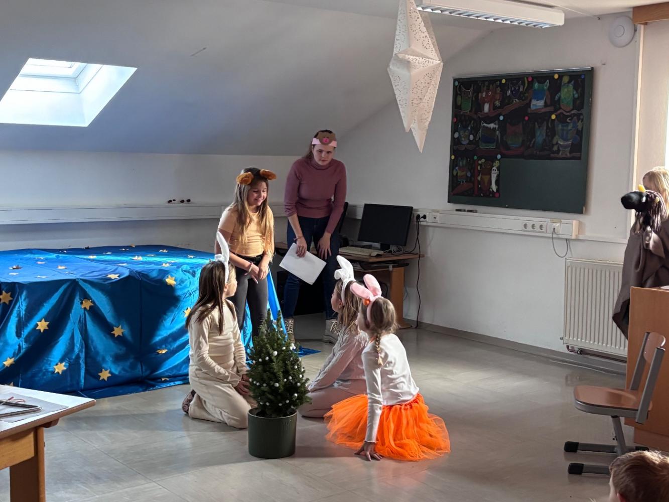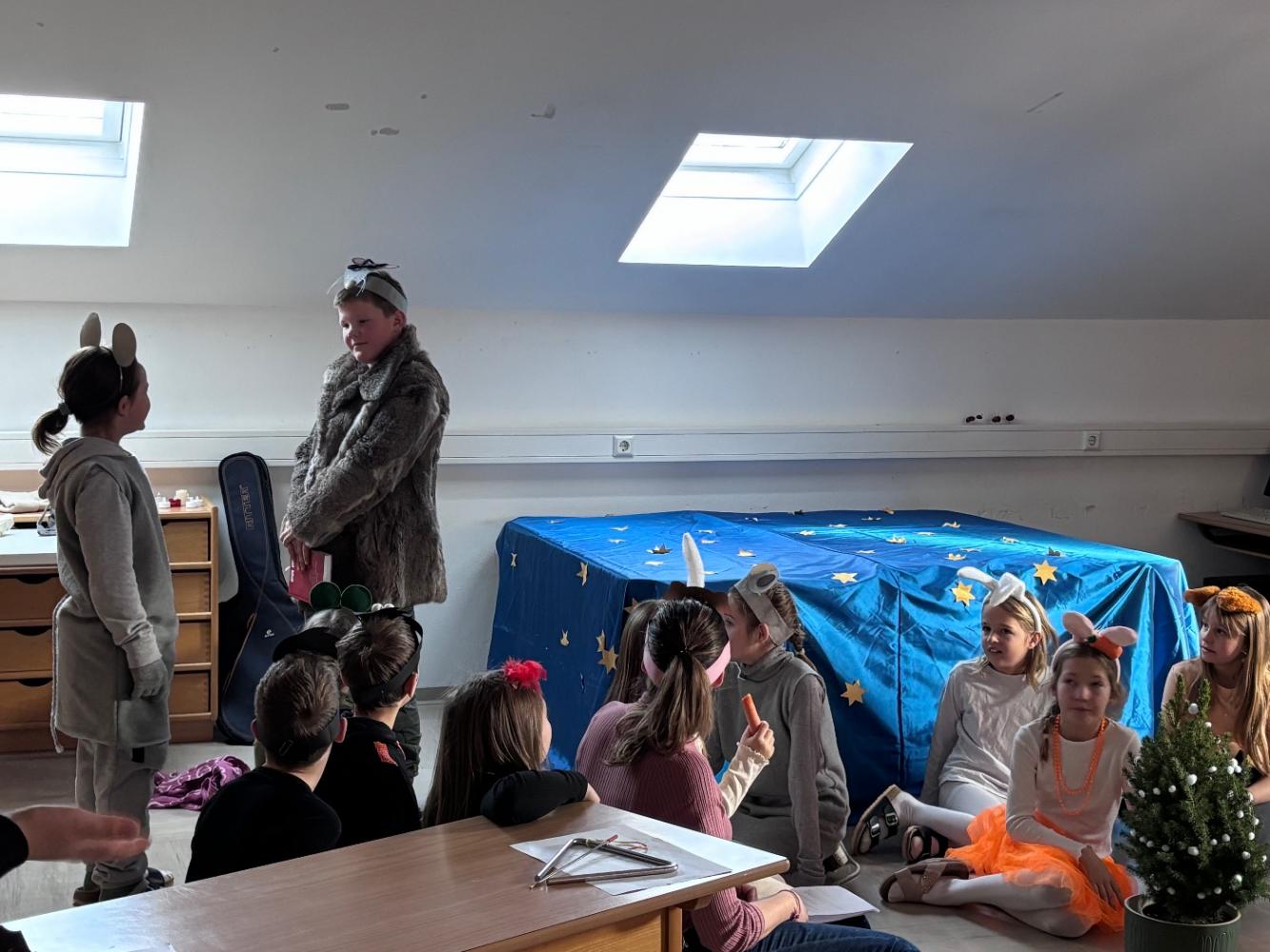 Pünktlich zu Weihnachten führen wir ein Stück auf und begleiten dies gemeinsam mit Liedern für unsere Eltern. Immer ein wenig nervös und aufgeregt freuen wir uns sehr auf diese Momente und zeigen sie auch gerne unseren Mitschülern der anderen Klassen an der Schule, die sich immer riesig freuen!