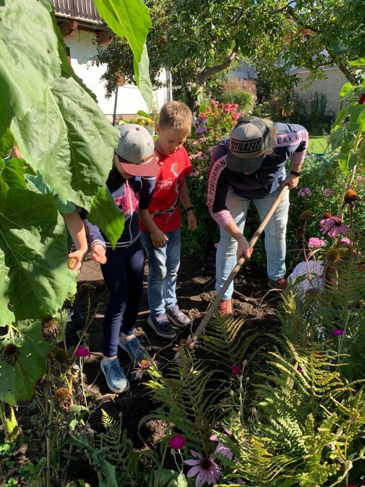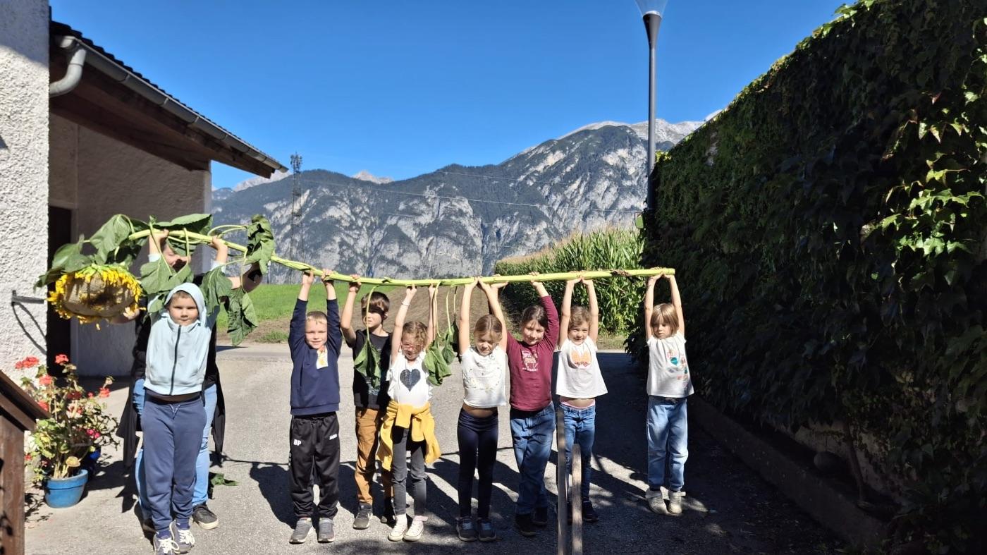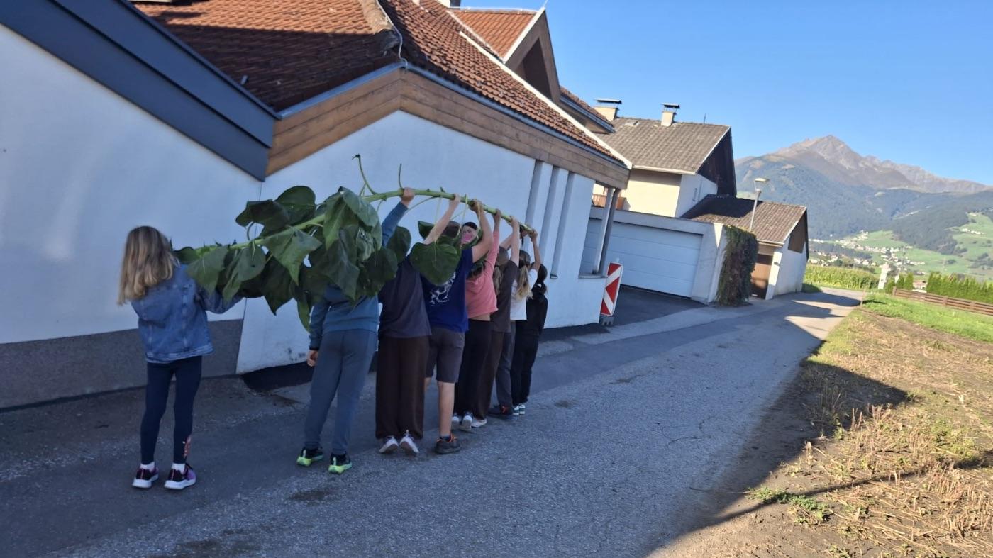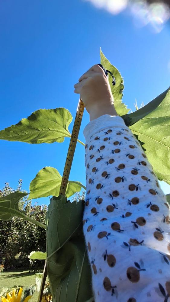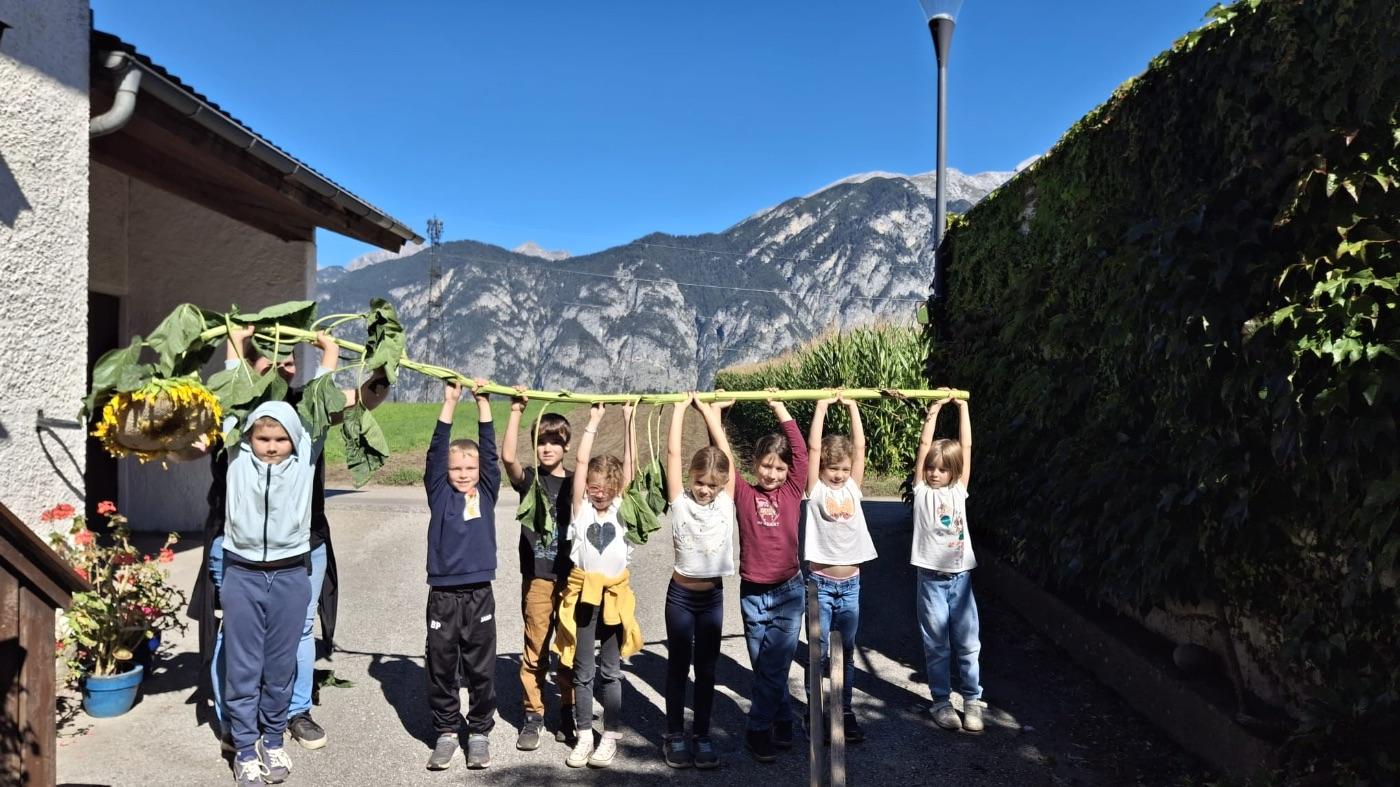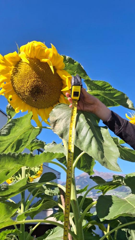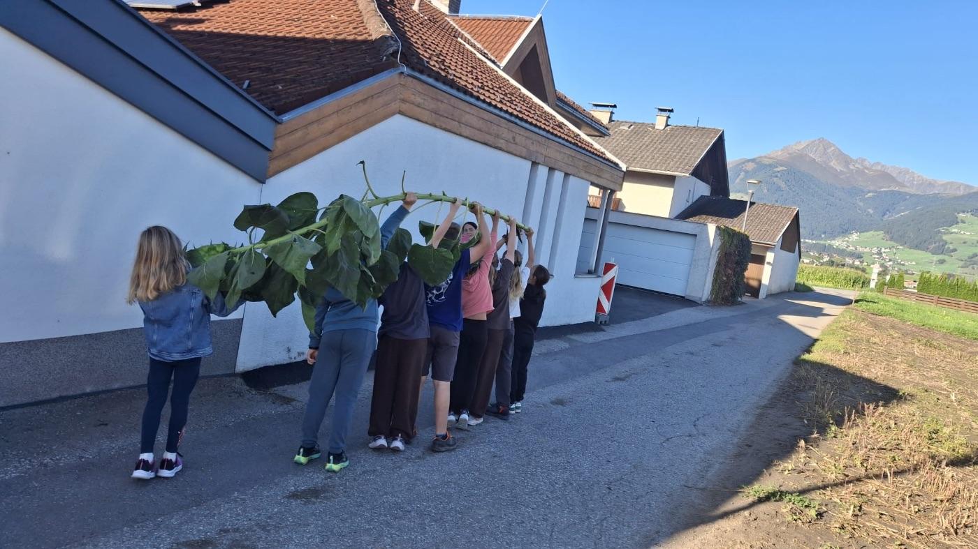 Gemeinsam mit Andrea Haid und Anja Köchl gingen wir in Gruppen zum Schulgarten. Dort angekommen staunten wir über die riesigen Sonnenblumen! Hast du gesehen WIE groß sie sind?